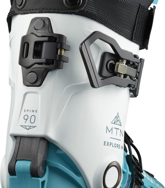 • Klamra umieszczona na cholewce jest wyposażona w specjalny ząbek, który utrzymuje cholewkę zamkniętą, jednocześnie zapewniając duży zakres ruchu podczas podchodzenia. Druga klamra znajduje się w dolnej części skorupy i jest odwrócona, aby zapobiec niezamierzonemu otwarciu.