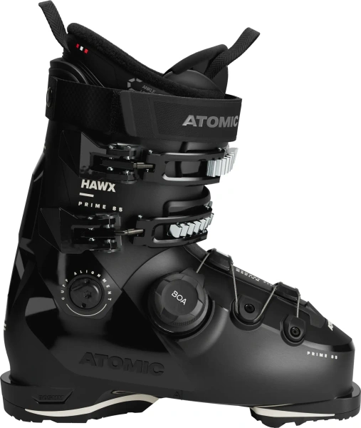 Atomic Hawx Prime 85 Boa to damskie buty zapewniające rewelacyjną efektywność, posiadające przyjazny flex. Wyróżniają się zastosowaniem BOA® Fit System w dolnej części skorupy – systemu precyzyjnego dopasowania do stopy z możliwością mikroregulacji w obu kierunkach. Konstrukcja Prolite łączy smukły profil ze strategicznymi wzmocnieniami w kluczowych strefach. Średniej szerokości skorupa wyposażona w technologię Memory Fit jest gwarancją najlepszego dopasowania w zaledwie kilkanaście minut. Liner Mimic Silver w połączeniu z rozwiązaniem Ankle Lock pozwala na precyzyjne dopasowanie wnętrza buta do kształtu stopy oraz trwałe trzymanie pięty na miejscu. W celu dopasowania do specyficznej budowy damskich łydek buty mają niższy mankiet i większą objętość na wysokości nogi. Aby uzyskać jeszcze więcej miejsca w okolicy łydki, wystarczy wyjąć spojler mankietu Adaptive Fit System (AFS).